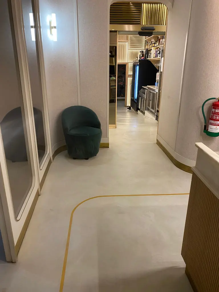 Revestimiento continuo DECOPOX en pavimento sobre cerámica original.